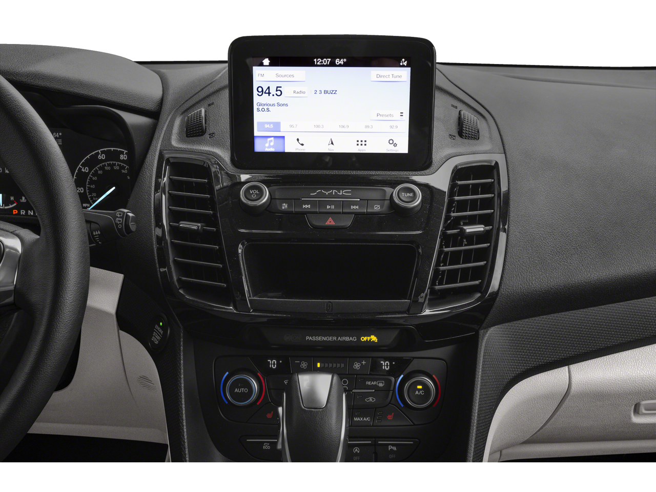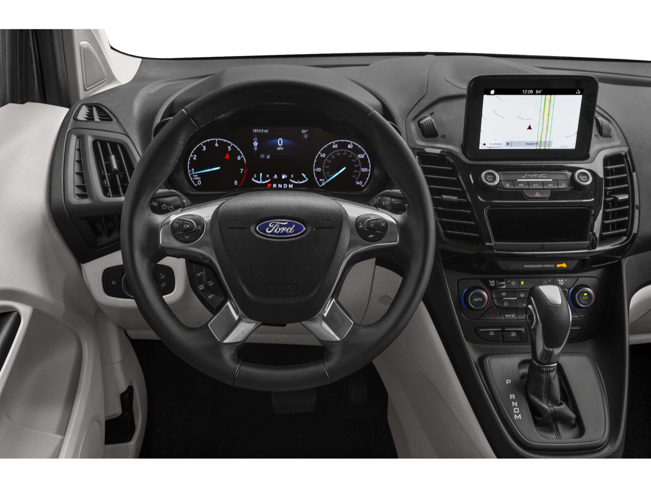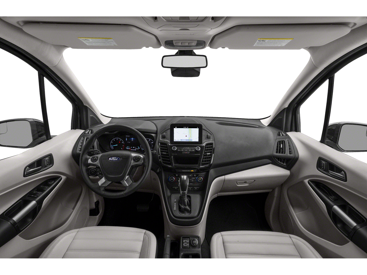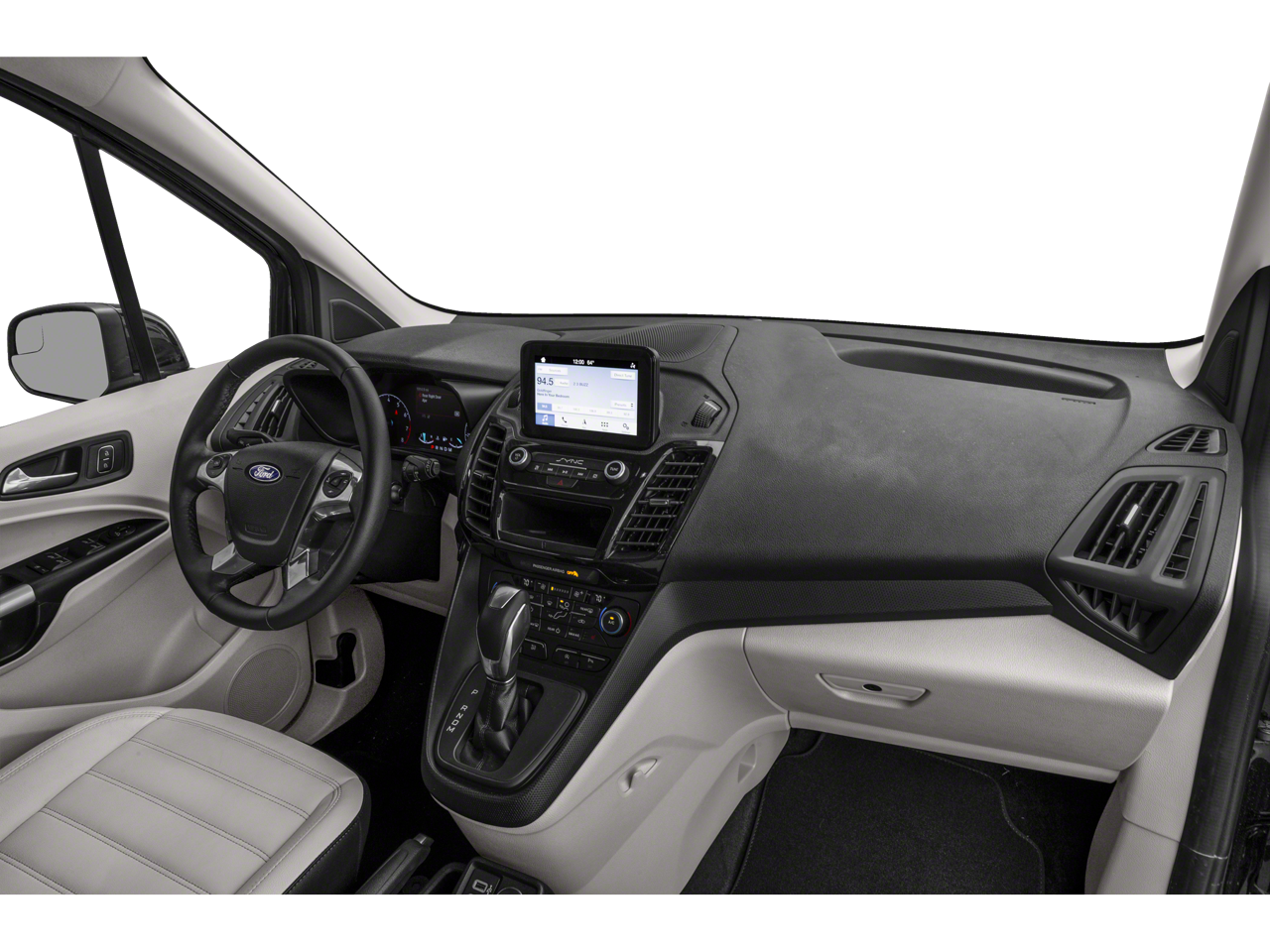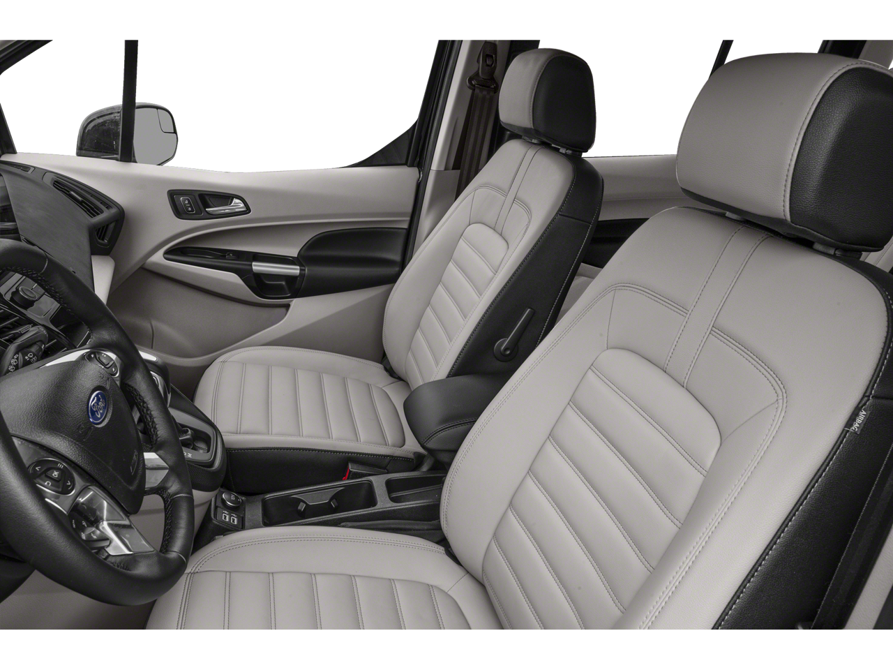 The interior of this Transit Connect is equally impressive, with leather-trimmed heated front bucket seats, a leather-wrapped steering wheel, and the advanced SYNC 3 infotainment system with navigation. You'll also enjoy the convenience of dual-zone climate control, a power driver's seat, and a panoramic sunroof that floods the cabin with natural light.
