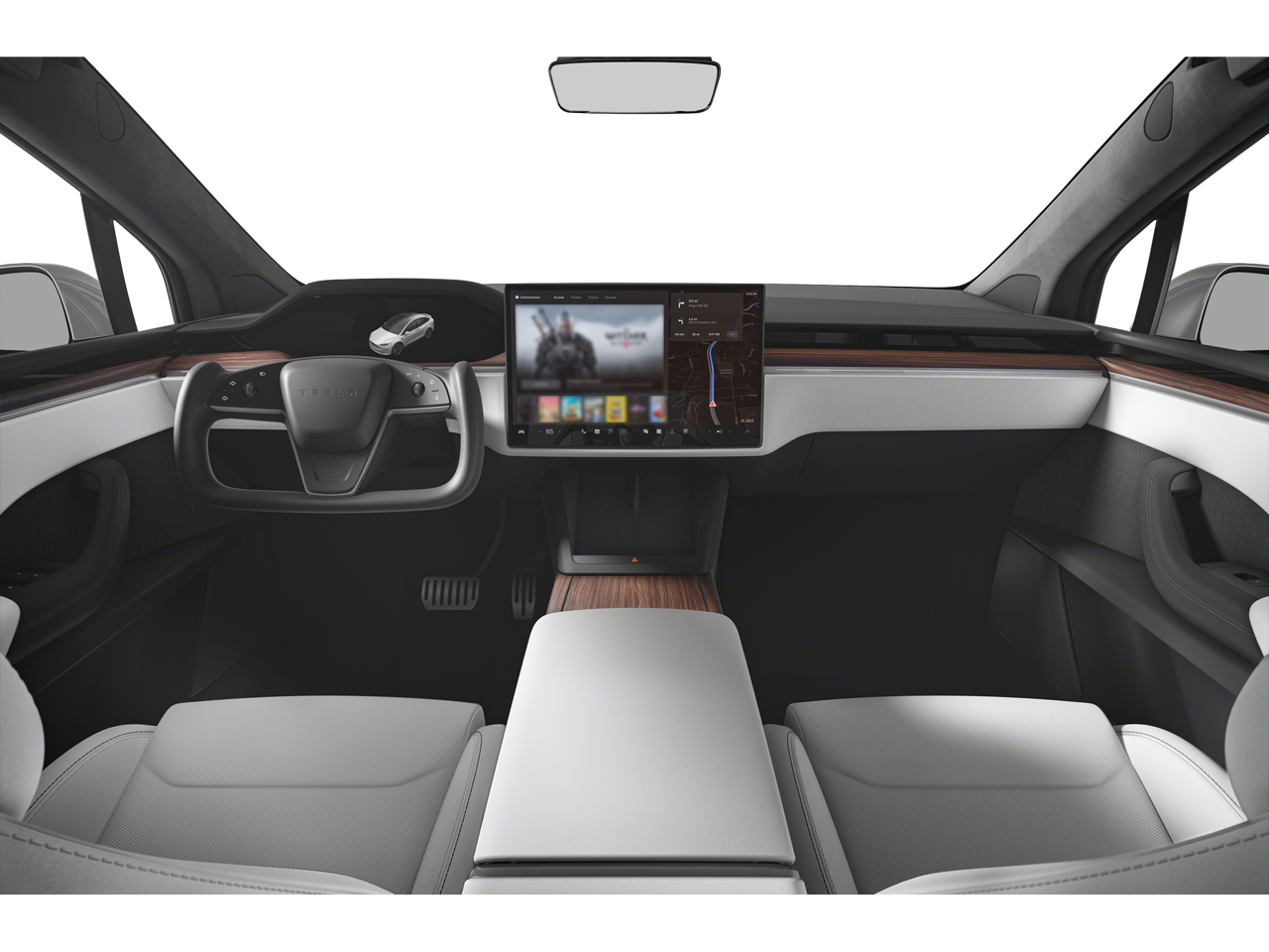 Pearl White Multi-Coat 2022 Tesla Model X AWD 1-Speed Automatic Electric Motor 4D Sport Utility, Electric Motor, 1-Speed Automatic, AWD, Pearl White Multi-Coat, Black w/Premium Seat Trim, 22 Speakers, 4-Wheel Disc Brakes, 5 Seat Interior, ABS brakes, Adaptive suspension, Air Conditioning, Alloy wheels, Audio memory, Auto High-beam Headlights, Auto tilt-away steering wheel, Auto-dimming door mirrors, Auto-dimming Rear-View mirror, Auto-leveling suspension, Automatic temperature control, Axle Ratio: TBD, Brake assist, Bumpers: body-color, Compass, Delay-off headlights, Door auto-latch, Driver door bin, Driver vanity mirror, Dual front impact airbags, Dual front side impact airbags, Electronic Stability Control, Exterior Parking Camera Rear, Four wheel independent suspension, Front anti-roll bar, Front Bucket Seats, Front Center Armrest, Front dual zone A/C, Front fog lights, Front reading lights, Fully automatic headlights, Garage door transmitter: Homelink, Genuine wood console insert, Genuine wood dashboard insert, Genuine wood door panel insert, Heated door mirrors, Heated front seats, Heated rear seats, Heated steering wheel, HVAC memory, Illuminated entry, Knee airbag, Leather steering wheel, Low tire pressure warning, Memory seat, Navigation System, Occupant sensing airbag, Outside temperature display, Overhead airbag, Passenger door bin, Passenger vanity mirror, Power door mirrors, Power driver seat, Power Liftgate, Power passenger seat, Power steering, Power windows, Premium Audio System, Premium Seat Trim, Radio data system, Rain sensing wipers, Rear air conditioning, Rear anti-roll bar, Rear audio controls, Rear reading lights, Rear side impact airbag, Rear window defroster, Remote keyless entry, Security system, Speed control, Speed-sensing steering, Speed-Sensitive Wipers, Spoiler, Sport steering wheel, Steering wheel memory, Steering wheel mounted A/C controls, Steering wheel mounted audio controls, Telescoping steering wheel, Tilt steering wheel, Traction control, Trip computer, Variably intermittent wipers, Ventilated front seats, Wheels: 20 Cyberstream.
