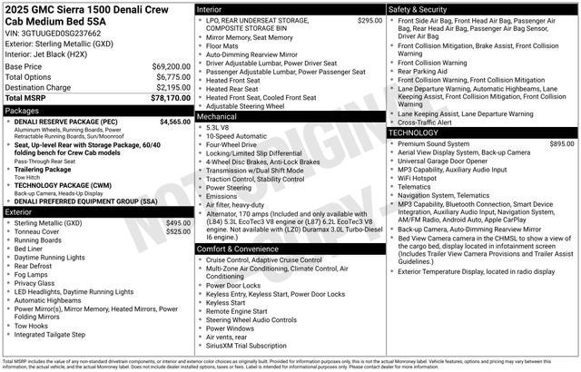 - Denali Preferred Equipment Group includes standard equipment