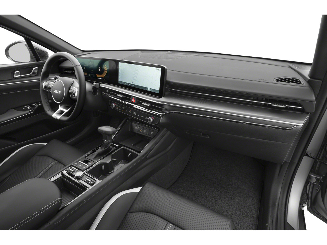 Snow White Pearl 2025 Kia K5 GT-Line AWD 8-Speed Automatic I4 K5 GT-Line, 4D Sedan, I4, 8-Speed Automatic, AWD, Snow White Pearl, Black w/SynTex Seat Trim, 4-Wheel Disc Brakes, 6 Speakers, ABS brakes, Air Conditioning, Alloy wheels, AM/FM radio: SiriusXM, Auto High-beam Headlights, Automatic temperature control, Brake assist, Bumpers: body-color, Carpeted Floor Mats, Delay-off headlights, Driver door bin, Driver vanity mirror, Dual front impact airbags, Dual front side impact airbags, Electronic Stability Control, Emergency communication system: Kia Connect (includes 1 year free trial), Four wheel independent suspension, Front anti-roll bar, Front Bucket Seats, Front Center Armrest, Front dual zone A/C, Front fog lights, Front reading lights, Fully automatic headlights, Heated door mirrors, Heated Front Bucket Seats, Heated front seats, Heated steering wheel, Illuminated entry, Knee airbag, Leather Shift Knob, Leather steering wheel, Low tire pressure warning, Navigation System, Occupant sensing airbag, Outside temperature display, Overhead airbag, Overhead console, Panic alarm, Passenger door bin, Passenger vanity mirror, Power door mirrors, Power driver seat, Power steering, Power windows, Radio data system, Radio: AM/FM Audio System, Rear anti-roll bar, Rear seat center armrest, Rear side impact airbag, Rear window defroster, Remote keyless entry, Security system, Speed control, Speed-sensing steering, Split folding rear seat, Sport steering wheel, Steering wheel mounted audio controls, Tachometer, Telescoping steering wheel, Tilt steering wheel, Traction control, Trip computer, Turn signal indicator mirrors, Variably intermittent wipers, Wheels: 18 x 7.5J Gloss Black Machined Finish Alloy.